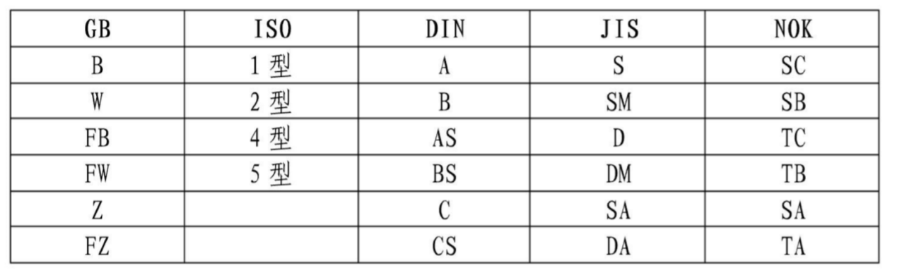 油封結(jié)構(gòu)標(biāo)注各國標(biāo)準(zhǔn)對照表